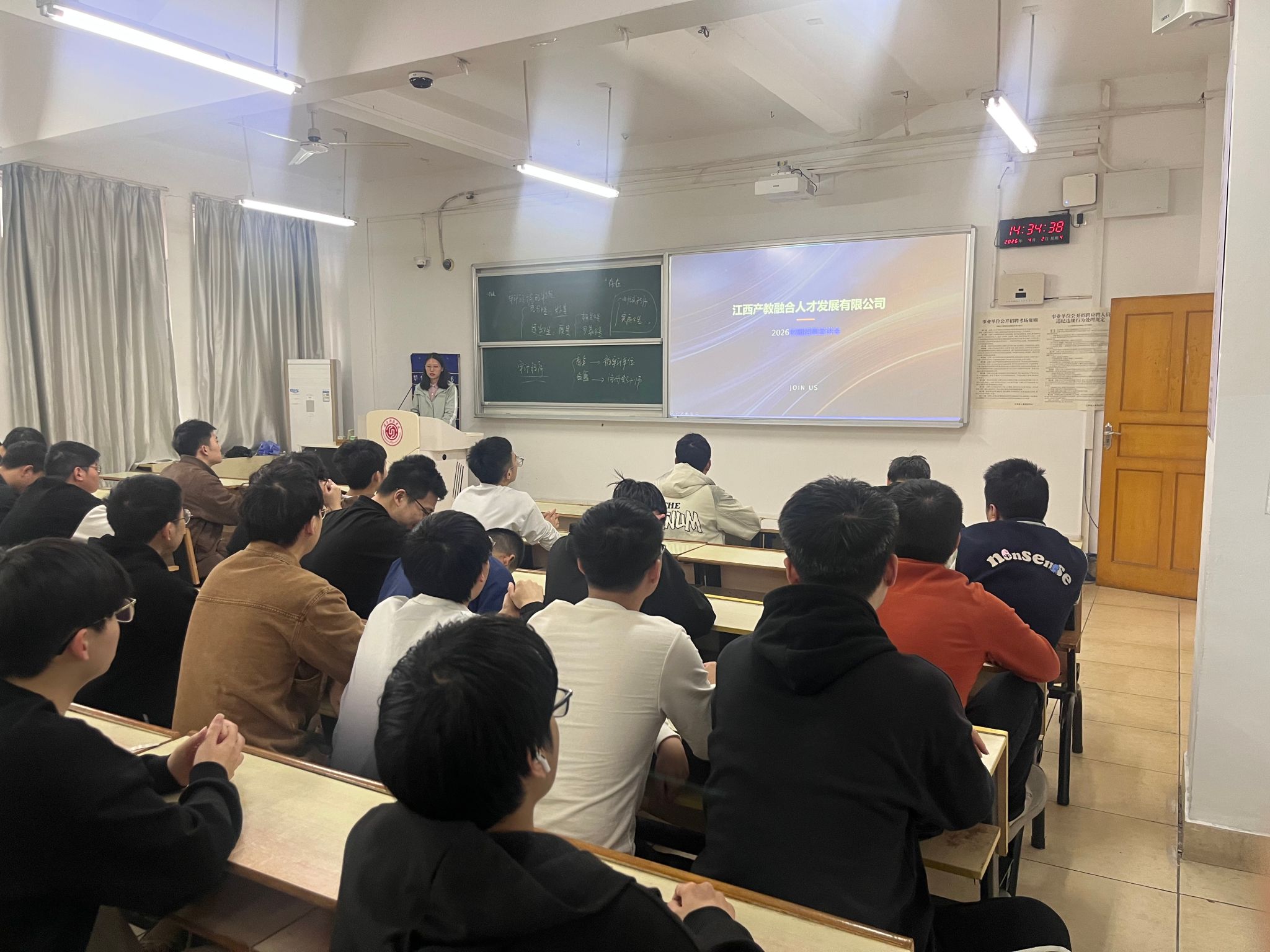 在招聘宣讲环节,企业代表重点介绍了本次面向我校毕业生开放的多种岗位,涵盖不同方向,能够满足多专业学生的求职需求。此外,公司还提供了较为完善的薪酬福利体系与良好的工作环境,保障员工的稳定发展。