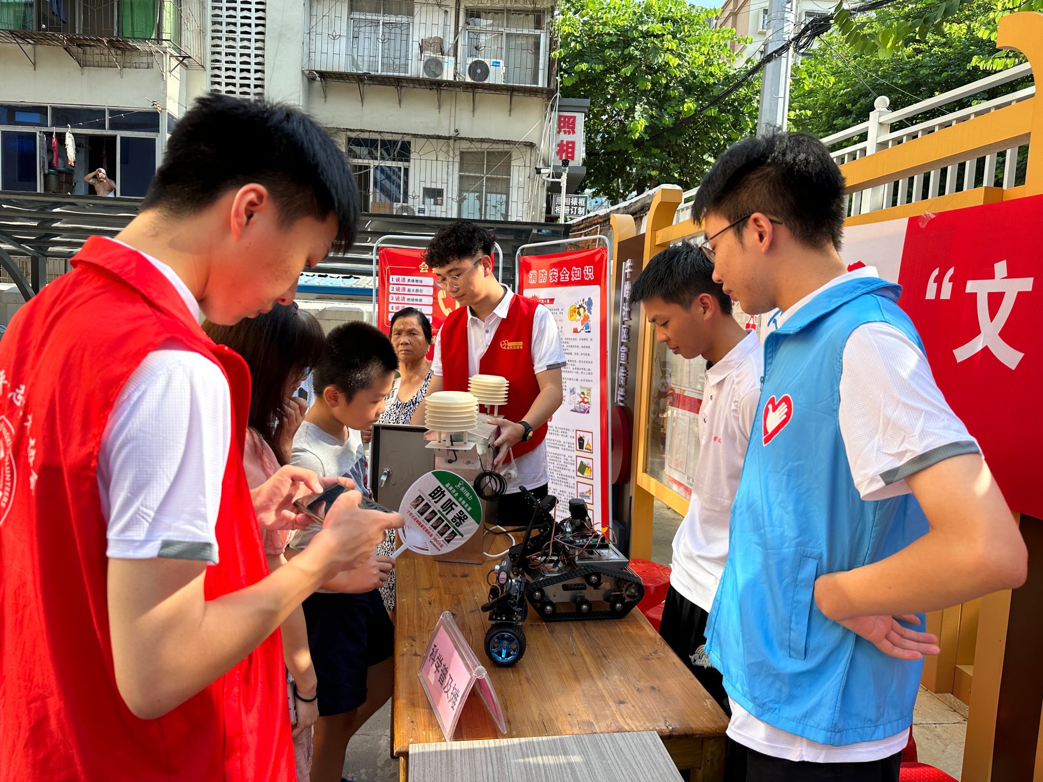 本网讯:科技惠民,在社区“沉浸式”体验科技魅力。8月3日,yl23455永利集团信息工程系“三信实践队”加入牛岭社区文明集市,以社区“摆摊”群众“赶集”的形式,面向社区居民举办电子科技展览,丰富公众文化生活,传播新时代文明实践正能量。
