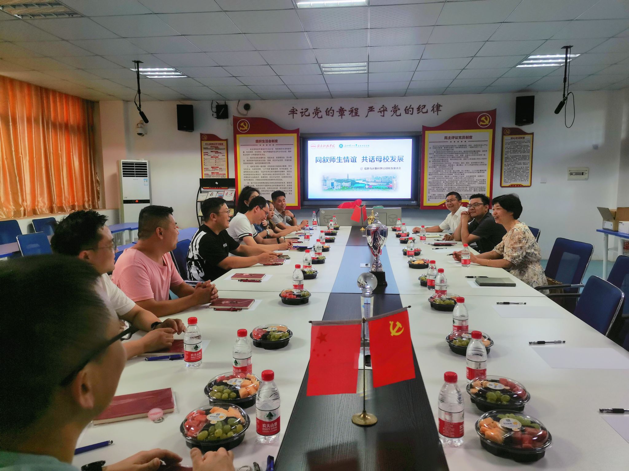 本网讯:人生最惜同窗谊,回首不忘读书时。8月19日下午,信息工程系在明德楼1201室开展信息与计算科学2003级校友座谈会,毕业近二十载的校友们再次相聚一堂,03级班主任陈亮、专业课教师彭洁参加座谈会。会议由系学工副主任魏炳辉主持。