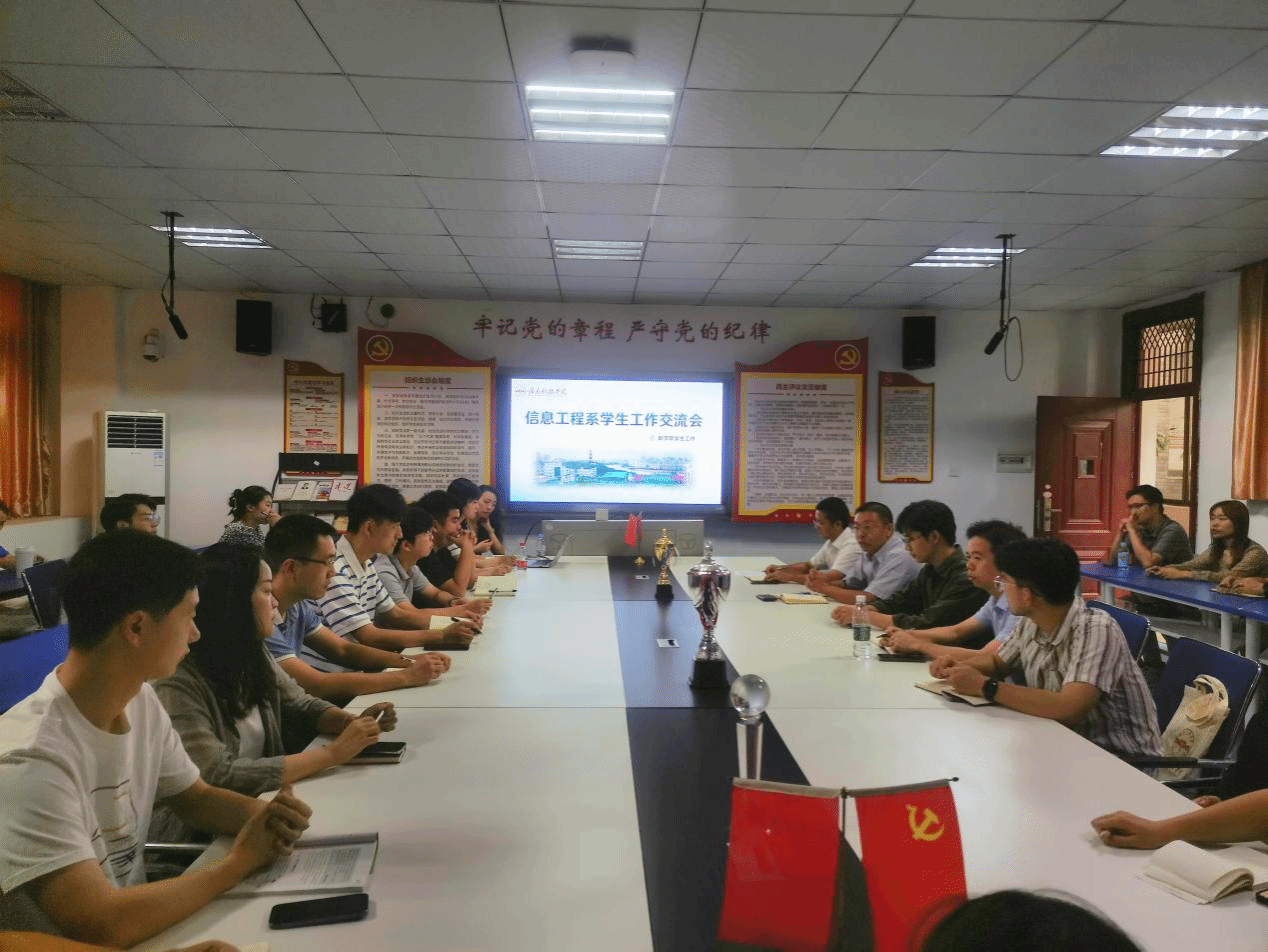 本网讯:8月30日下午,信息工程系在1教1201室召开学生工作交流会,信息工程系党总支书记邓小鸿、学工副主任魏炳辉、全体辅导员和新进教师参加会议。会议由魏炳辉主持。