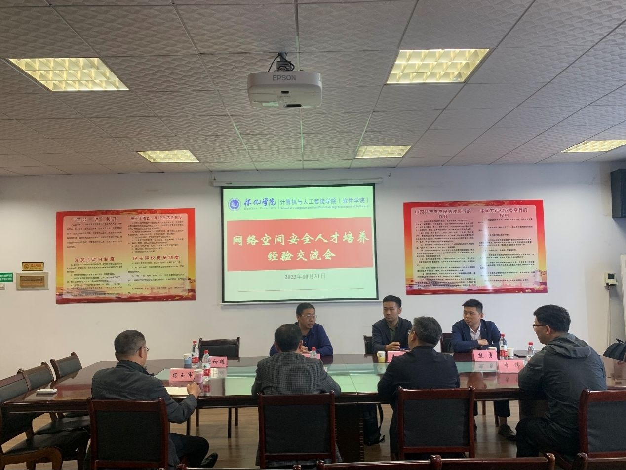 31日上午,邓小鸿一行在来到湖南省怀化市的怀化学院,受到怀化学院计算机与人工智能学院党委书记马洪平、院长石元泉的热情招待,马洪平介绍了怀化学院计算机与人工智能学院的历史沿革及发展情况,石元泉重点对网络空间安全专业的申报、人才培养方案制定以及人才服务地方经济发展情况作了介绍。