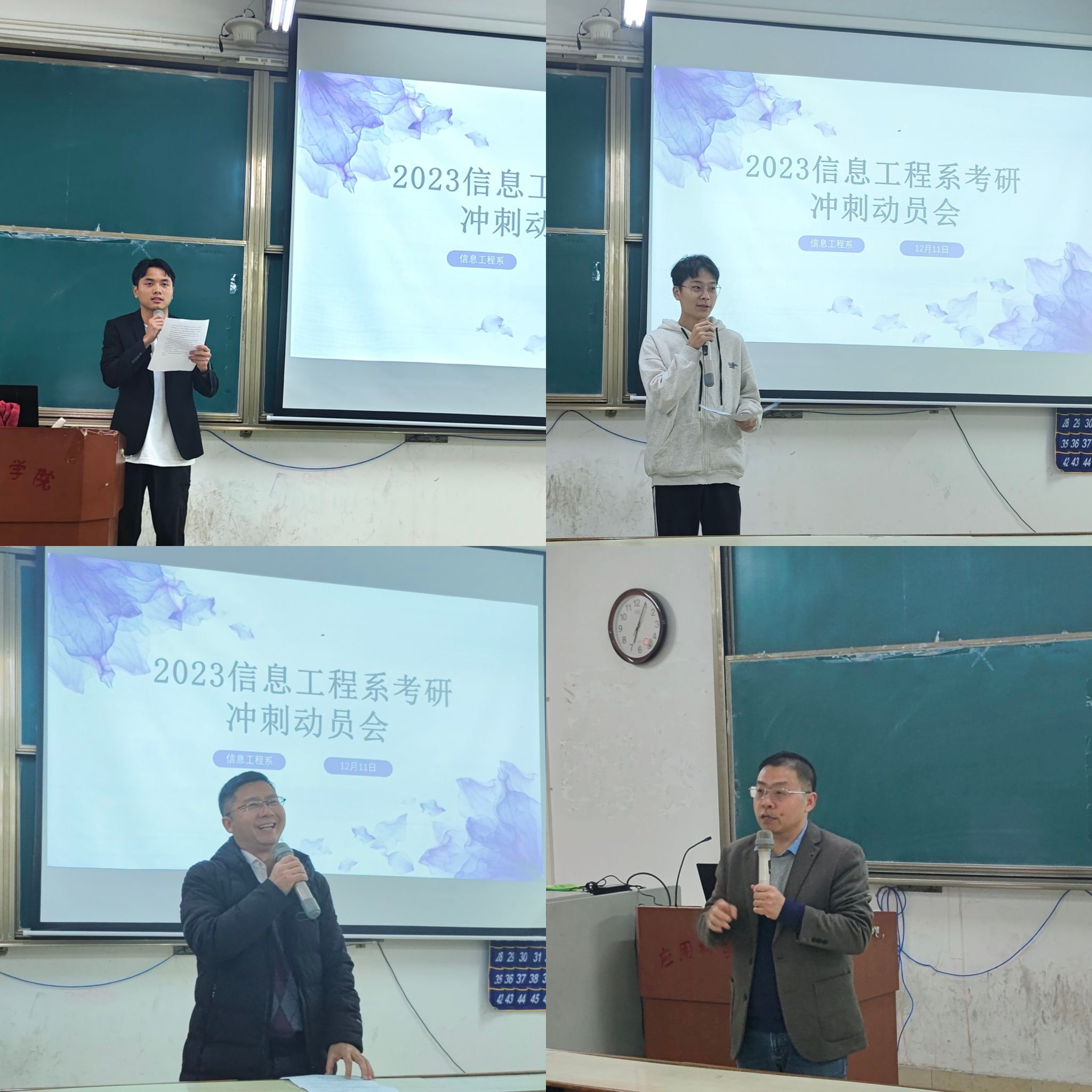本网讯:为帮助信息工程系考研学子缓解考前压力,坚定意志,决胜考场,12月11日至13日,信息工程系开展2023考研冲刺系列活动。信息系党总支书记邓小鸿、学工副主任魏炳辉、20级班主任代表何乐到场为考研学子送去温暖关怀和美好祝福。