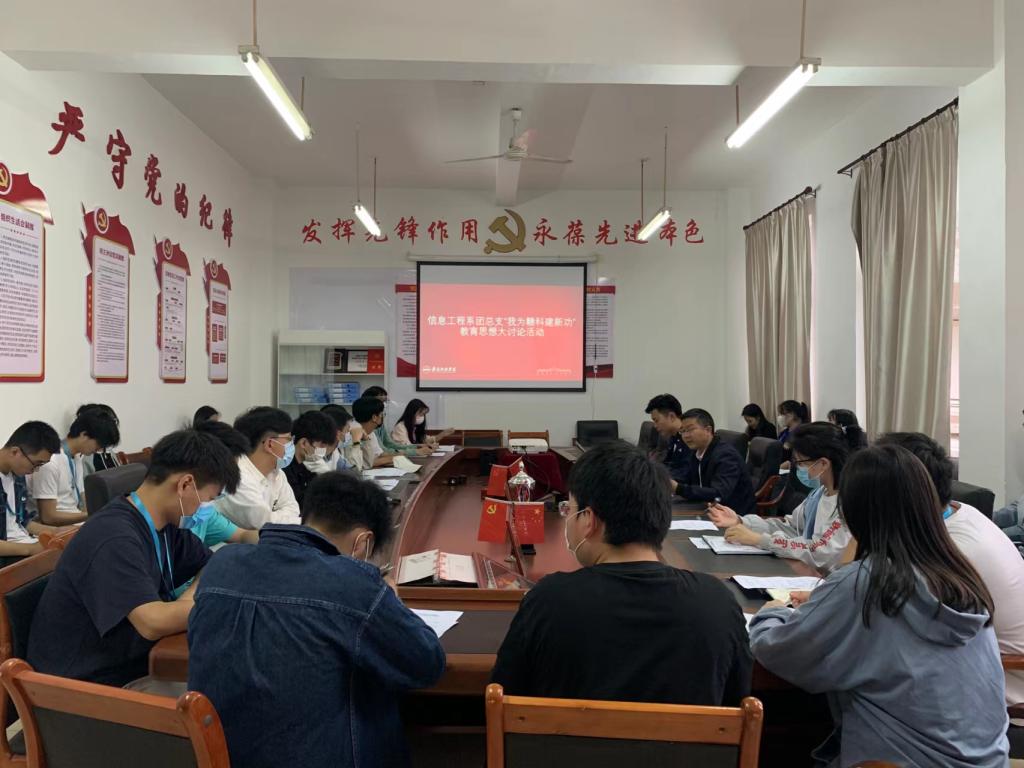 本网讯:2022年5月13日下午五点,信息工程系“我为赣科建新功”教育思想大讨论在主教八楼会议室召开,参与本次讨论的有信息工程系副主任魏炳辉老师、团总支书记陈世琪老师,此外信息工程系20余名学生代表也参与了本次大讨论。