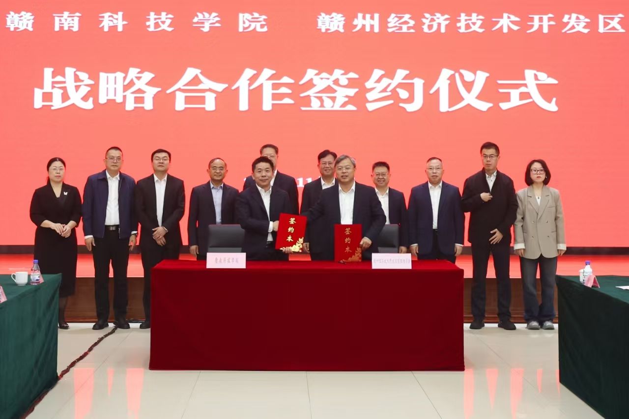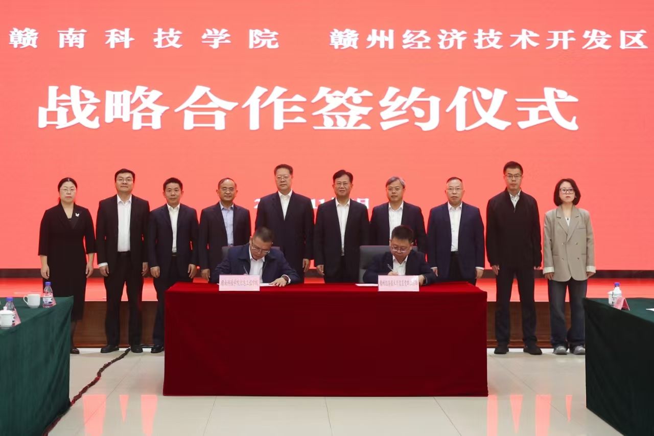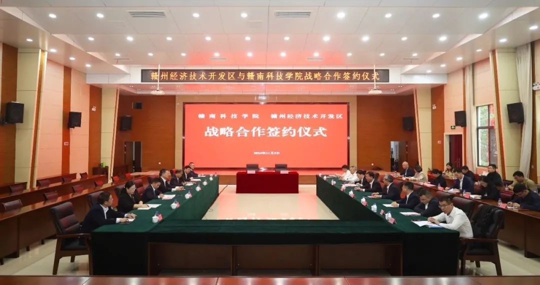 本网讯:11月5日上午,我校与赣州市经济技术开发区管委会签署战略合作协议,签约仪式在经开区区政中心会议厅举行。校党委书记邱建军,党委副书记、校长李国金,党委委员、副校长何锦龙,赣州经开区党工委副书记、管委会主任梁丁盛,党工委委员、赣州综保区党工委专职副书记温荣喜参加仪式。经开区管委会副主任,赣州市公安局开发区分局党委书记、局长黄晓明主持仪式。