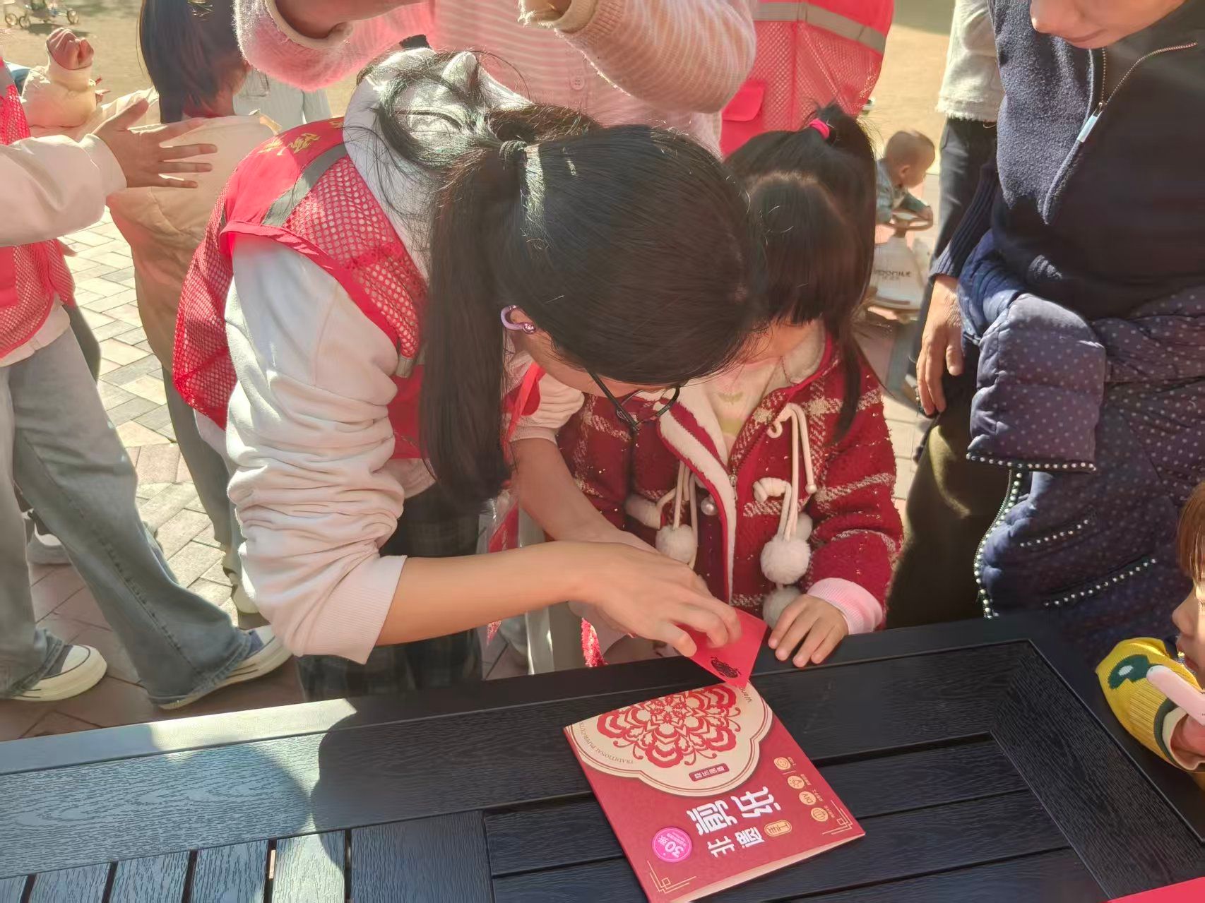 活动现场,志愿者们耐心细致地向社区小朋友讲解剪纸的历史渊源、文化内涵及基本技法。从对折、描图到剪裁,孩子们在志愿者的指导下,亲手制作出一幅幅充满童趣与年味的剪纸作品。红纸翻飞间,不仅传递着传统技艺的魅力,也拉近了青年学子与社区居民之间的距离。“以前只在电视上看过剪纸,今天自己动手剪了一幅作品,感觉特别有成就感!”一位参与活动的小朋友兴奋地说道。社区居民纷纷表示,这样的活动既有趣又有意义,希望今后能有更多类似的文化体验走进社区。