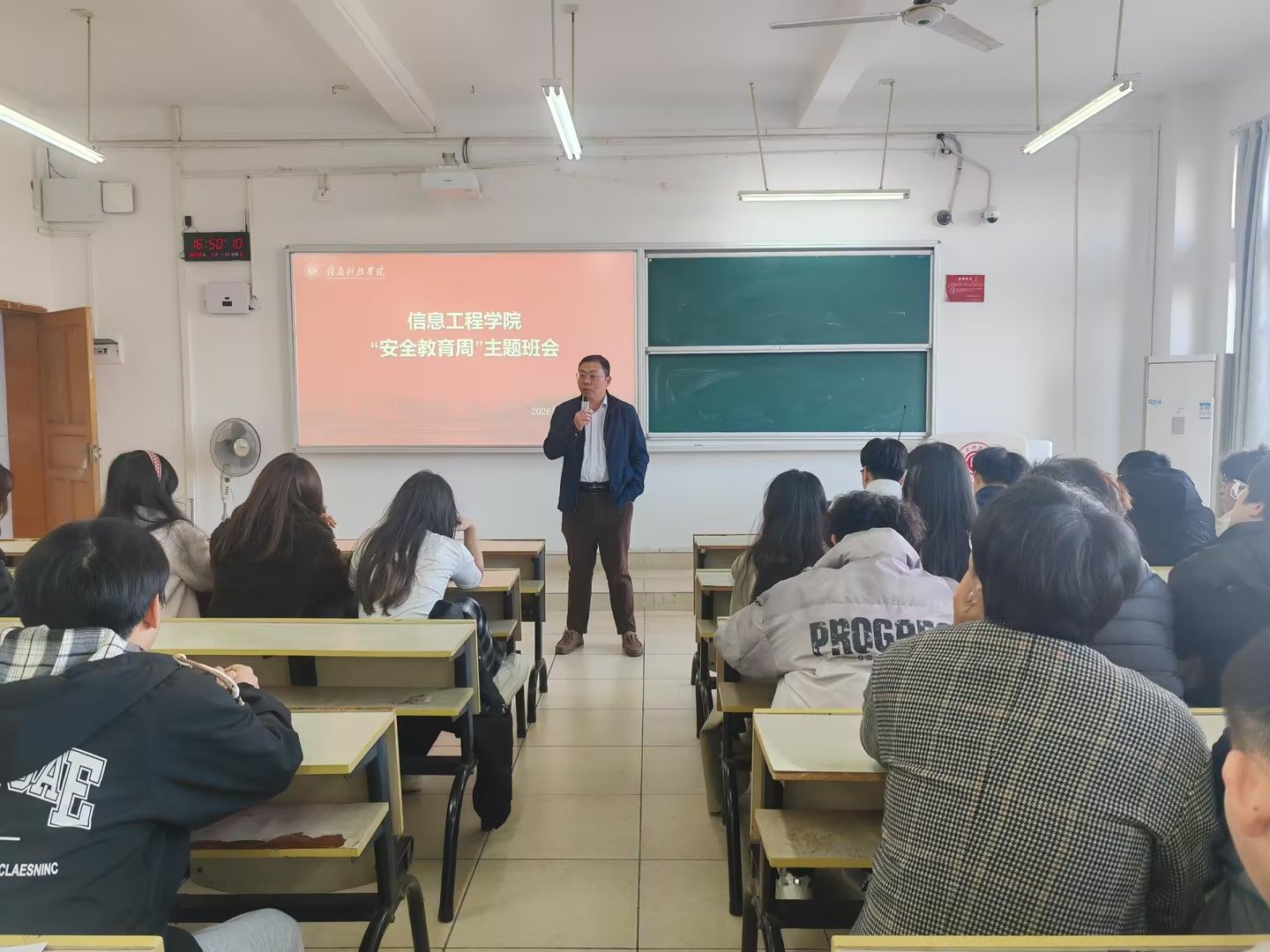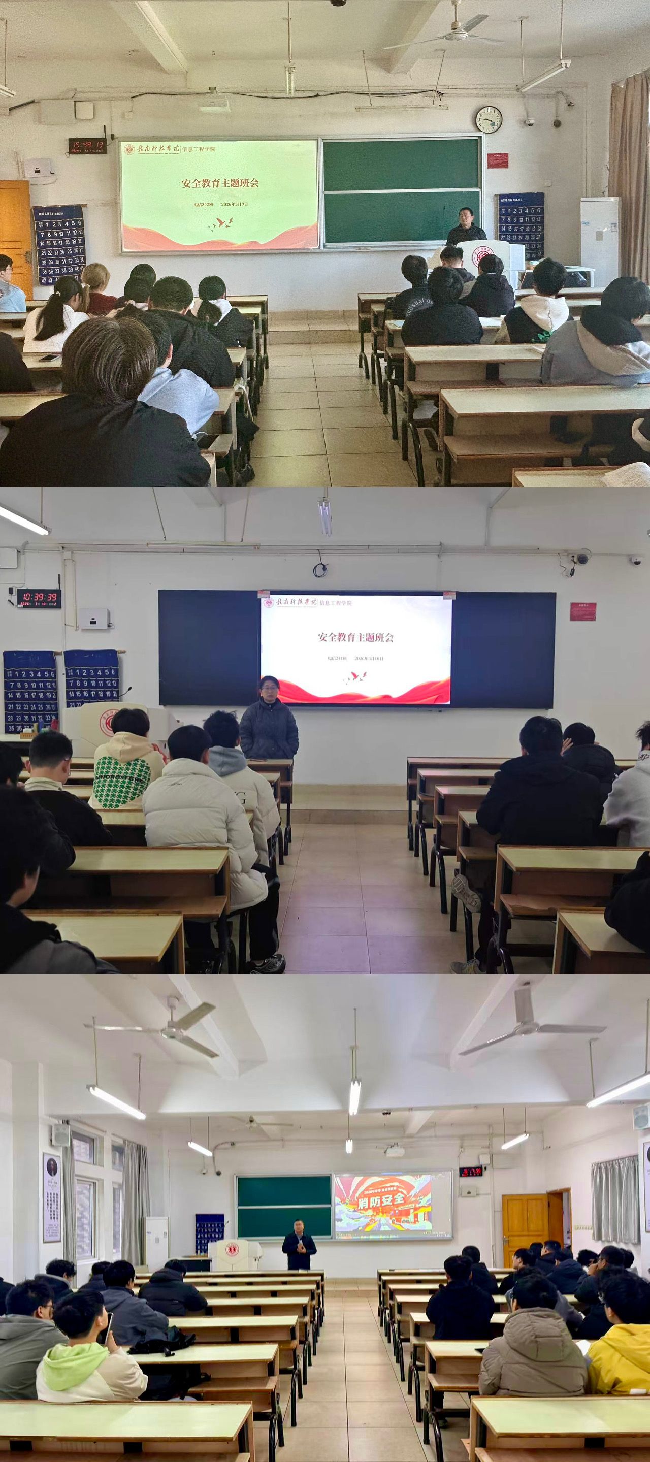 党委委员、党政办公室主任易连军参与电信242班“安全教育”主题班会,党委委员、学生工作办公室主任魏炳辉参与电信221班“安全教育”主题班会,党委委员、教学科研办公室主任康岚兰参与电信241班“安全教育”主题班会。
