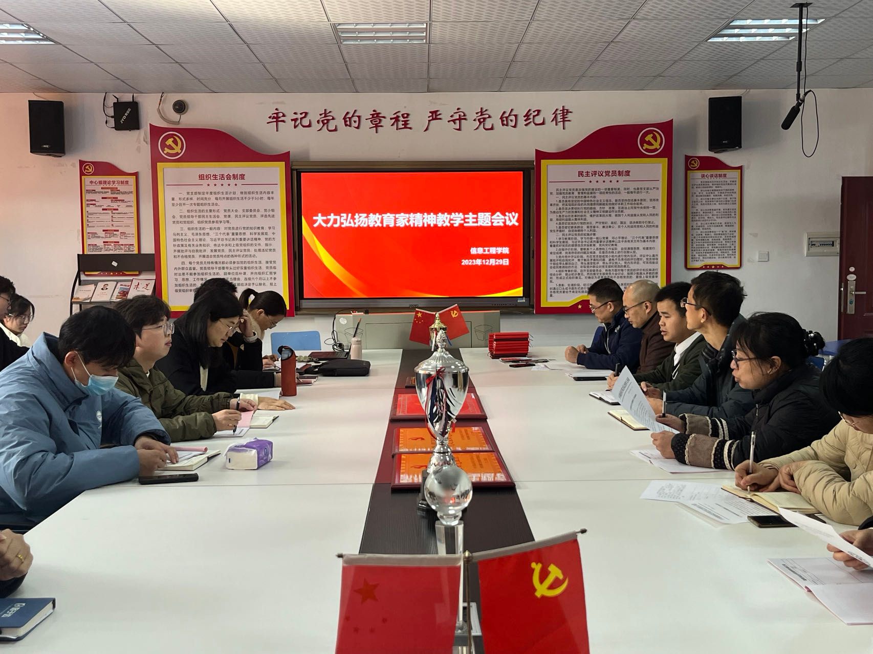 信息工程系主任胡健强调,全体教职工要以教育家为榜样,大力弘扬教育家精神,坚定心有大我、至诚报国的理想信念;坚守言为士则、行为世范的道德情操;牢记为党育人、为国育才的初心使命;涵养启智润心、因材施教的育人智慧;保持勤学笃行、求是创新的躬耕态度,怀揣乐教爱生、甘于奉献的仁爱之心,秉持胸怀天下、以文化人的弘道追求。自信自强、踔厉奋发,为培养德智体美劳全面发展的社会主义建设者和接班人作出新的更大贡献。