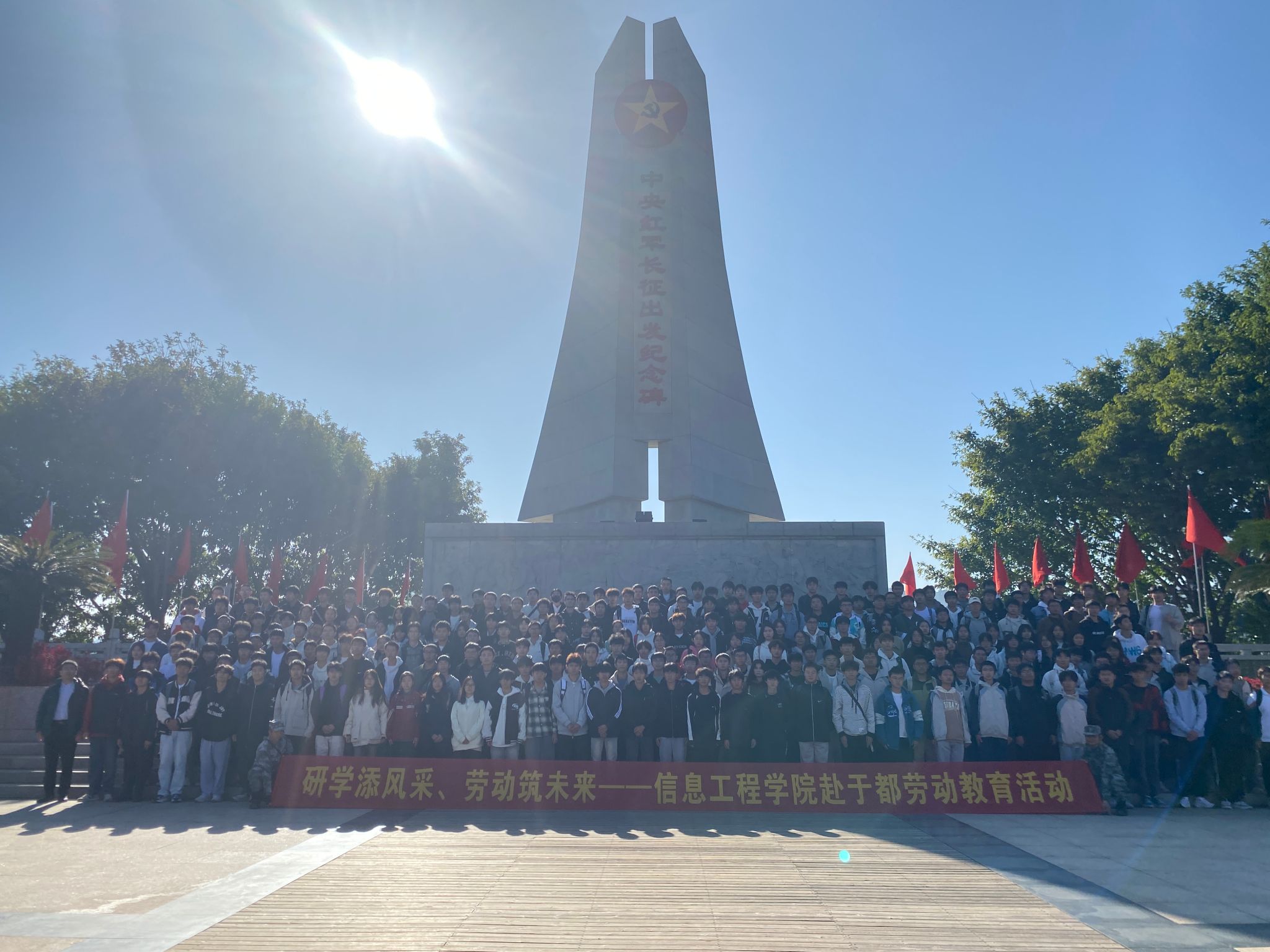 伴着清晨第一缕阳光,师生们来到了于都中央红军长征出发地纪念园,在教官的指挥下整齐列队,齐聚于庄严肃穆的中央红军长征出发纪念碑之下,共同开启意义非凡的红色之旅。在纪念园内,师生们怀着崇敬的心情参观了中央红军长征出发纪念馆和长征第一渡口,馆内丰富的文物与翔实史料,生动再现了红军长征的波澜壮阔。参观结束后,师生们纷纷表示,此次活动深受触动,决心传承长征精神,努力学习,为实现中华民族伟大复兴贡献青春力量。随后,师生们一同参观了潭头社区和硒博馆。