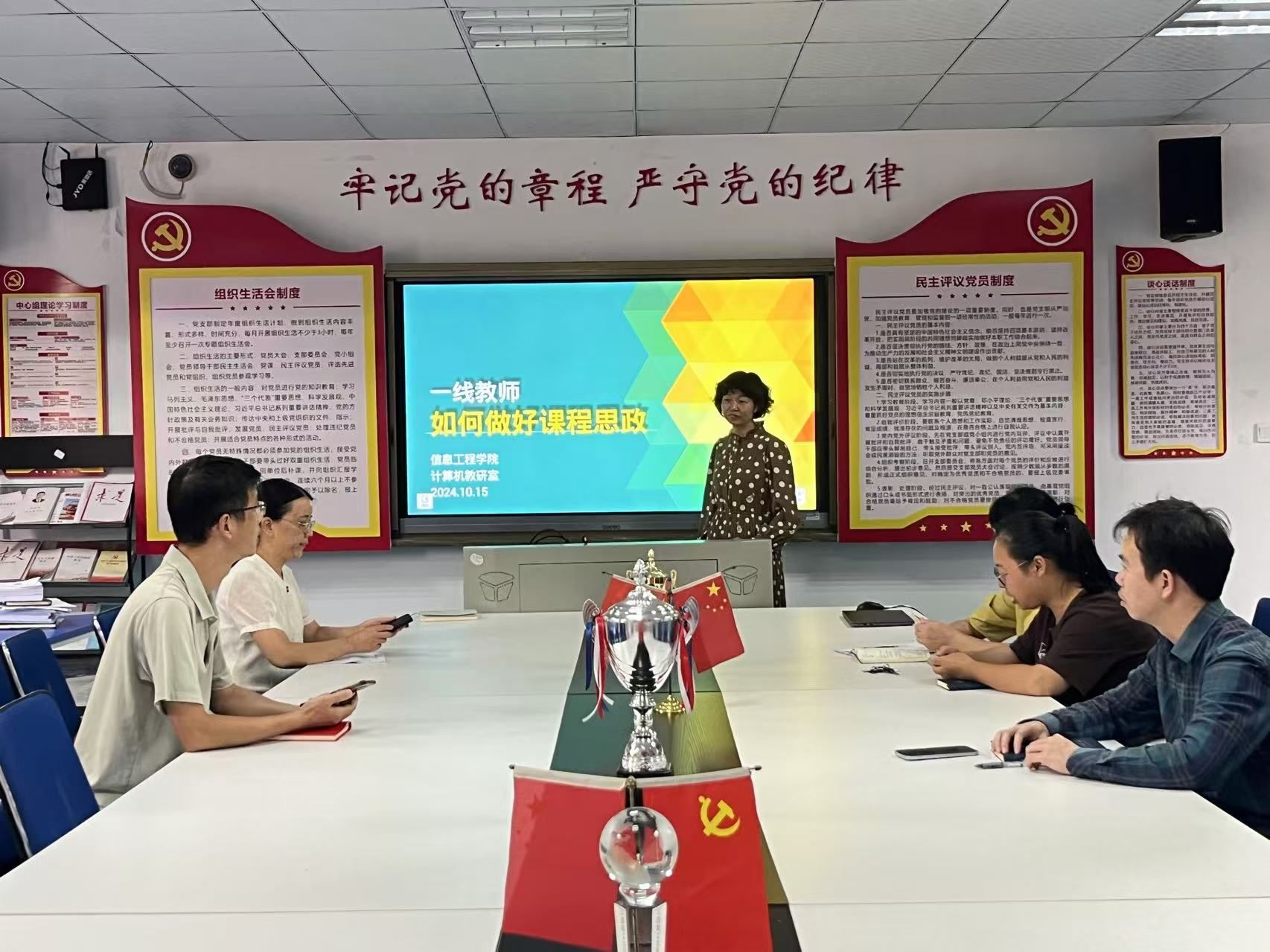 本网讯:为深入贯彻落实教育部关于课程思政建设的指导精神,提升教师的课程思政教学能力,10月15日 ,永利y23455计算机教研室在明德楼1201会议室举办了“一线教师如何做好课程思政”专题讲座。计算机教研室全体教师和其他教研室的一线教师积极参与,共同探讨和分享课程思政的实践经验与策略。讲座由计算机教研室主任彭洁主持。