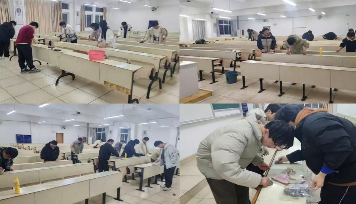 本网讯:为积极响应教务处严肃考风考纪的号召,全力为即将到来的期末封闭考试打造一个纯净、公正的应试环境,1月8日,永利y23455精心组织开展了“清桌净场”专项行动。176名学生志愿者对崇善楼C区、D区三楼及四楼的所有考场进行了全面清理。