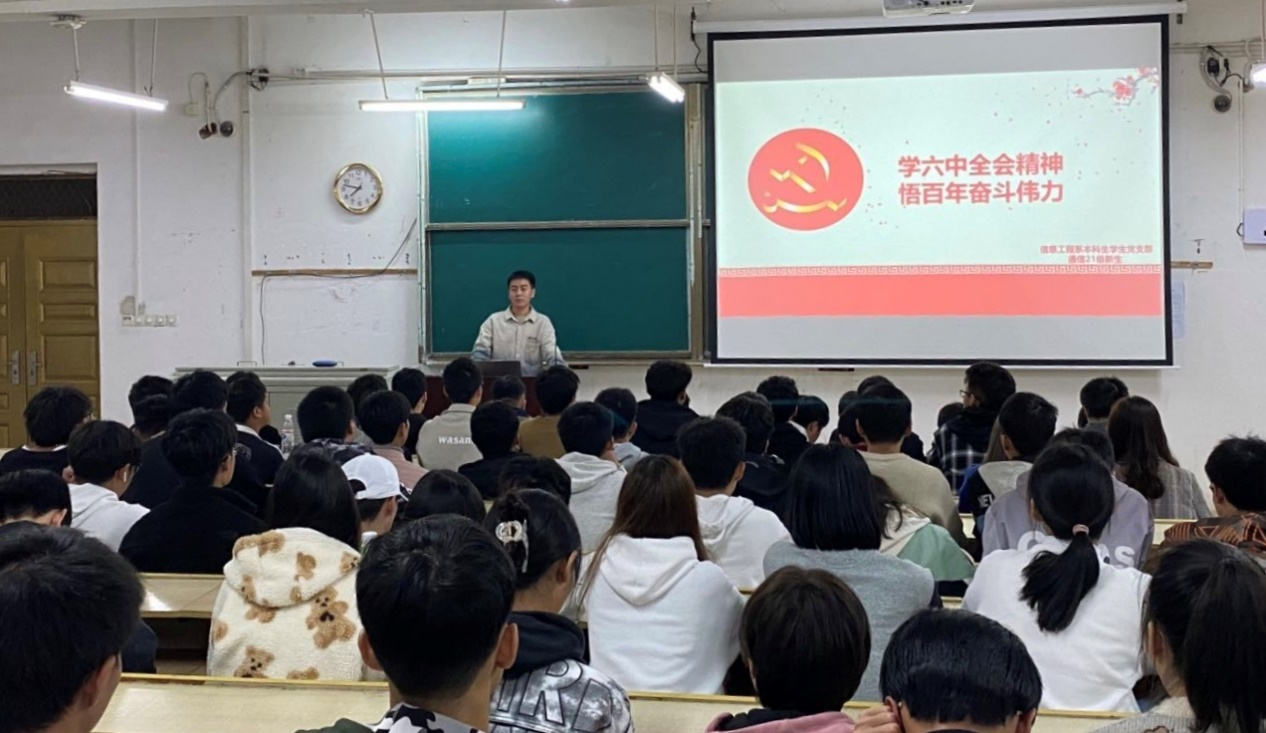 本网讯:2021年11月21日,信息工程系本科生党支部在主教Z1D1开展“学六中全会精神,悟百年奋斗伟力”主题党日活动。本次党日活动由党支部部分党员同志与21级通信工程专业全体同学共同参与。