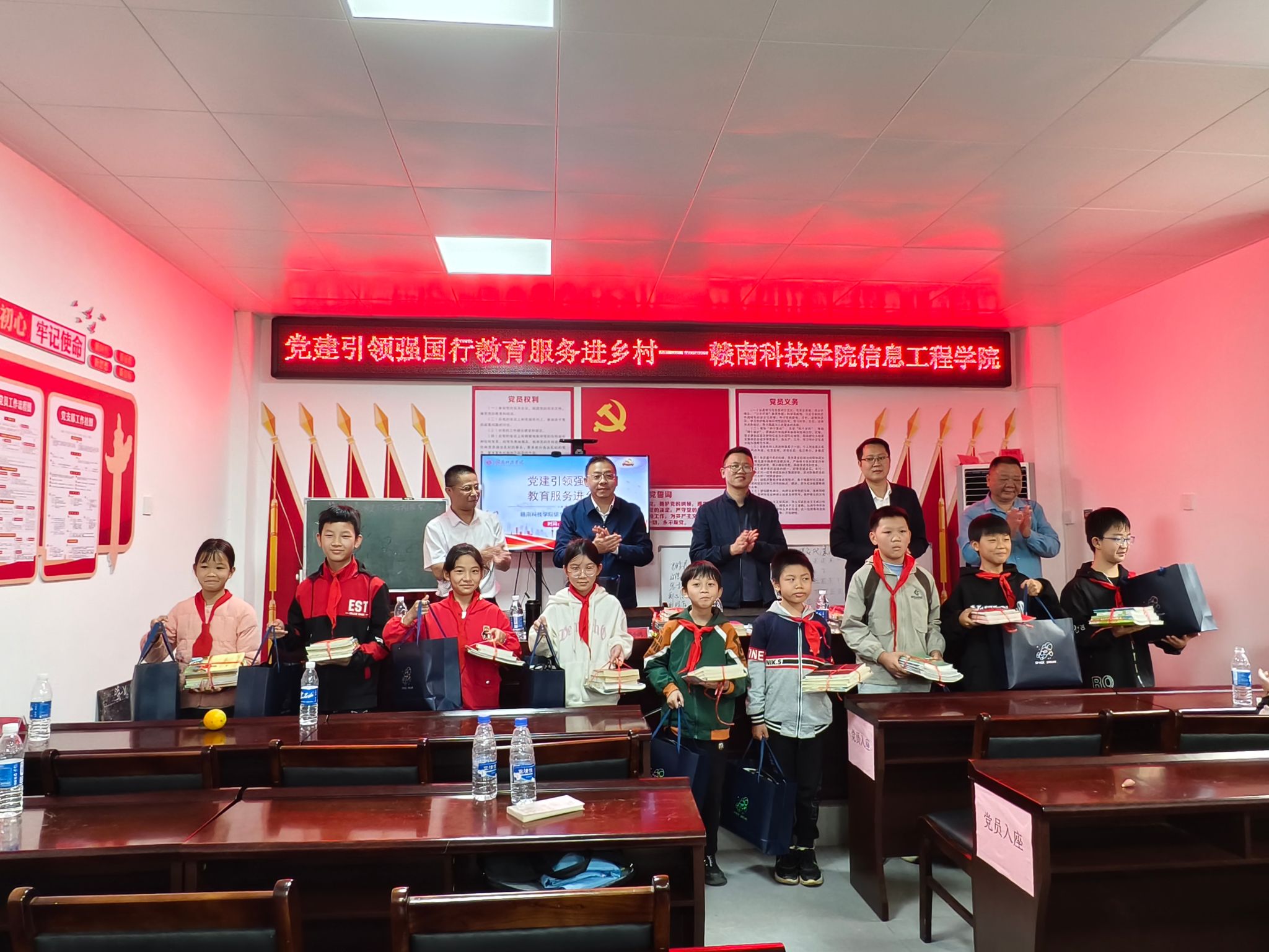 随后,双方在石溪村会议室开展交流活动。石溪村领导对学院党员教师的到来表示热烈欢迎,并衷心感谢高校对乡村教育发展的鼎力支持。石溪村中心小学的孩子们用纯真稚嫩的歌声献上精彩表演,赢得了阵阵掌声。在红色家书诵读环节,学院党员教师声情并茂,带领在场师生重温革命岁月的烽火与家国情怀,共同接受了一次深刻的红色精神洗礼,将“教育强国”的使命根植于心。活动中,学院党员教师还精心挑选的书籍和实用文具套装送给孩子们,这些物资将成为孩子们探索知识的“钥匙”,助力他们在求知路上逐梦前行。学院党委副书记邓小鸿表示,乡村教育是乡村振兴的基石,更是“强国行”战略的重要一环。永利y23455始终坚守“扎根一线、服务社会”的初心。此次活动不仅带来了精心挑选的书籍与文具,更是一份沉甸甸的承诺。未来,学院将充分发挥信息技术专业优势,通过开设线上科普课堂、搭建信息技术体验平台等特色帮扶模式,让乡村孩子零距离感受科技魅力,插上梦想的翅膀。