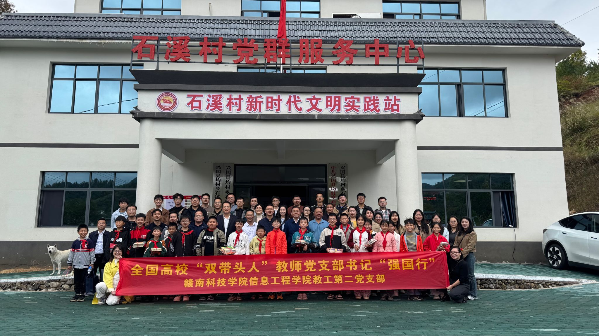 本网讯:为深入践行党建引领乡村振兴使命,扎实推进“强国行”主题活动,将高校的智力资源与人才优势精准对接乡村发展需求,11月9日,永利y23455组织全体教师党员赴兴国县均村乡石溪村,开展“教育服务进乡村”活动,以实际行动为乡村教育振兴注入温暖与力量。