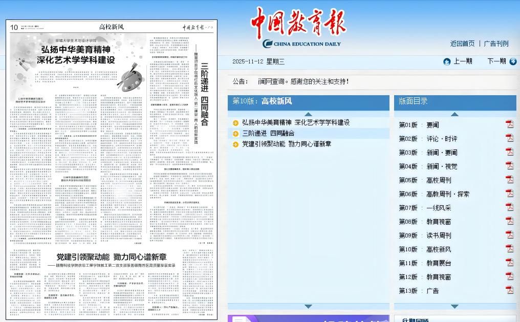 本网讯:11月12日,《中国教育报》第10版“高校新风”栏目刊发了我校永利y23455李华群、邓小鸿题为《党建引领聚动能,勠力同心谱新章》的文章,对yl23455永利集团永利y23455教工第二党支部“强国行”专项团队服务赣南苏区高质量发展进行总结介绍。文章链接:http://paper.jyb.cn/zgjyb/html/2025-11/12/node_144749.htm。