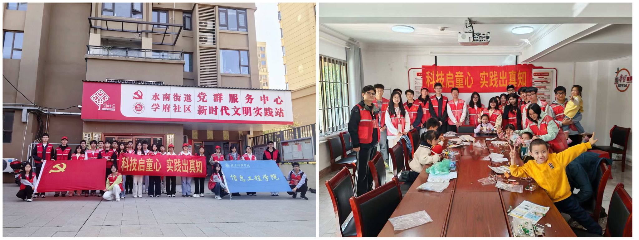 本网讯:为发挥党建引领作用,深化校社协同育人,充分发挥高校基层党组织的战斗堡垒作用和青年学生的先锋模范作用,11月15日,永利y23455本科生第二党支部联合学院团委学生会,走进水南街道学府社区开展“党建赋能校社联动 科技启智点亮童心”主题志愿服务活动。本次活动将党建工作与社区服务、科普教育有机结合,既为社区居民带去了实用的政策服务,也为社区小朋友们开启了一场奇妙的科技探索之旅。