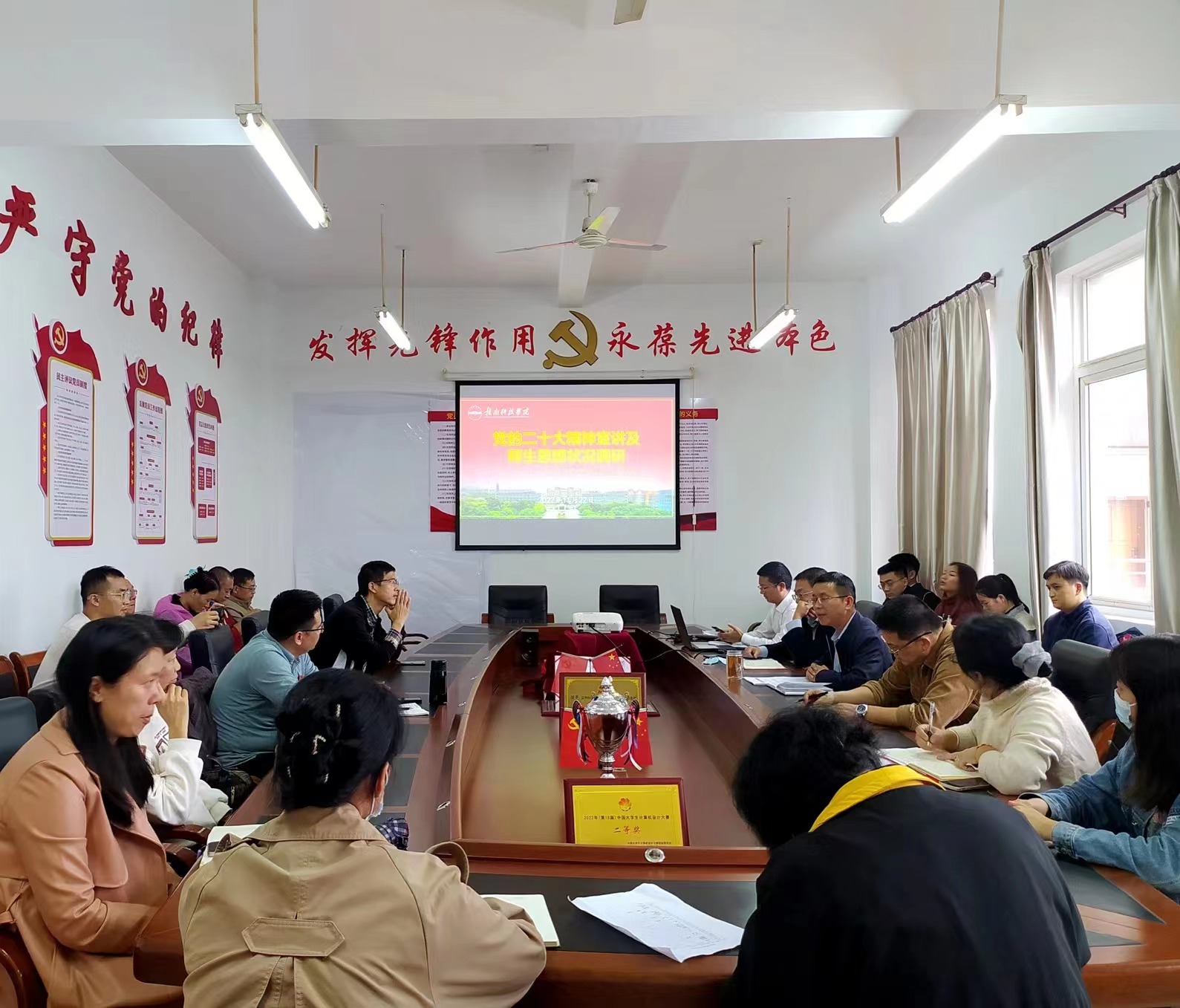 本网讯:为落实立德树人根本任务,培根铸魂育新人,11月22日下午,信息工程系教工党支部召开学习党的二十大精神专题会议,学院党委副书记陶知翔以普通党员身份参加会议,深入师生宣讲党的二十大精神。会议由信息工程系教工党支部书记魏炳辉主持,信息工程系全体教职工、学生支部党员代表现场聆听了报告。