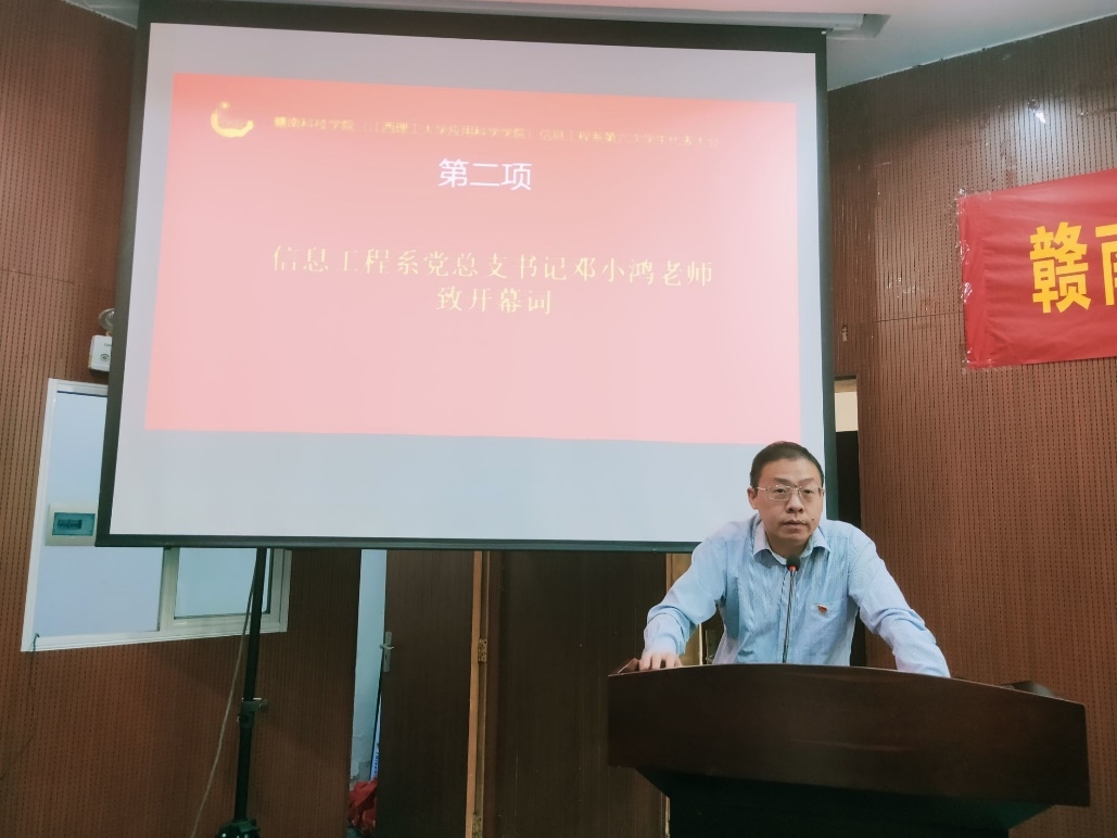 本网讯:10月23日上午,信息工程系在二教学术报告厅召开了第六次学生代表大会。信息工程系党总支书记邓小鸿、副主任魏炳辉、团总支书记陈世琪参加了本次大会。