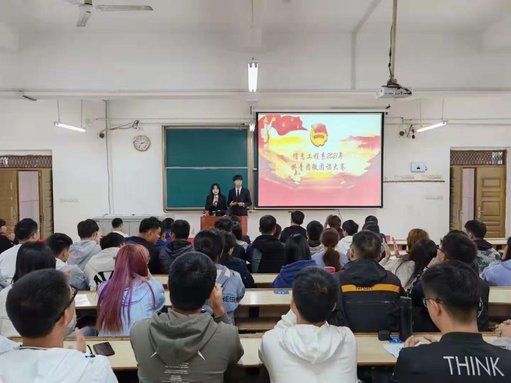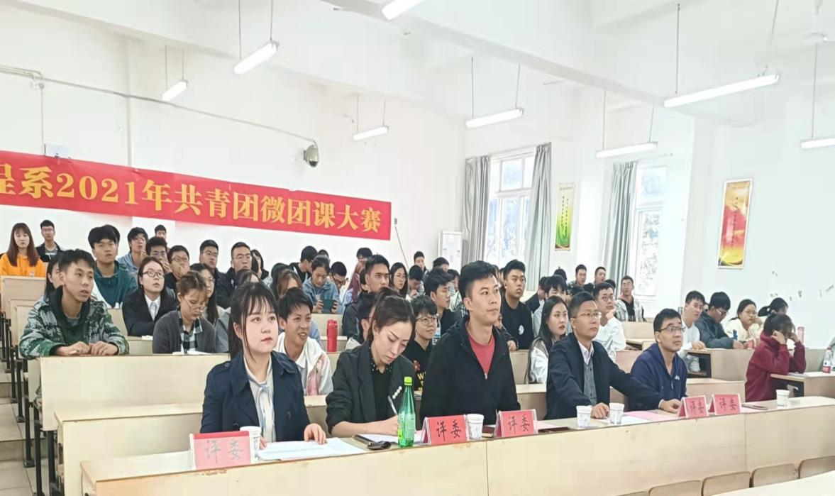 本网讯为了进一步夯实学校共青团基层基础,为青年学生搭建展示自我、能力提升、交流思想的平台,信息工程系2021年共青团“微团课”大赛于10月17日在主教Z1D3教室举办,本次大赛的评委为系副主任魏炳辉老师,系团总支书记陈世琪老师,辅导员吴宪老师、刘波老师以及龚峣老师。