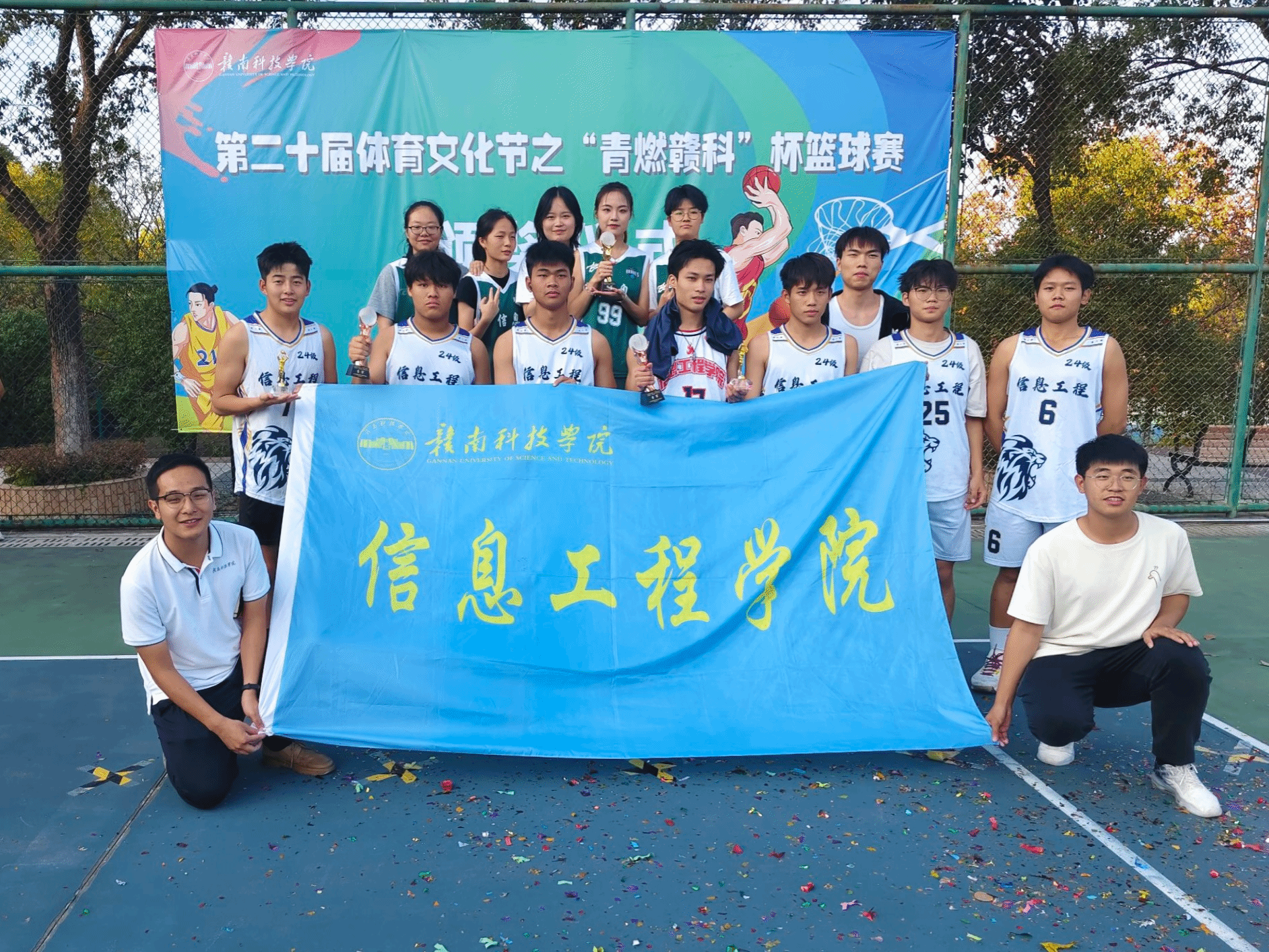 本次“青燃赣科”杯篮球赛我院共有女子组、新生组、老生组三支队伍参加。其中女子组获得冠军,新生组、老生组获得季军,不仅彰显了永利y23455学子优秀的身体素质,更体现了学院学子团结协作、顽强拼搏的良好精神风貌。