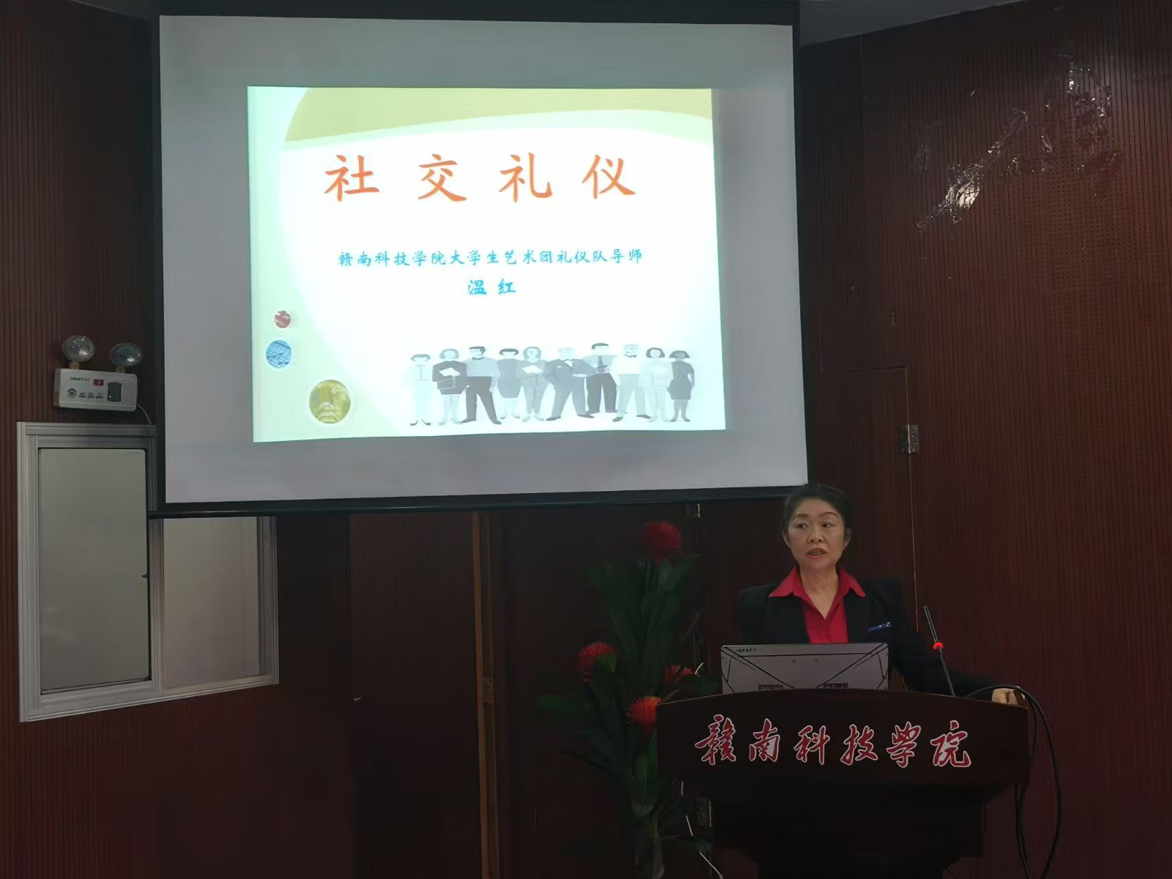 本网讯:3月1日,永利y23455在新民楼报告厅举办第三十五期“就在赣科”就业育人大讲坛——大学生面试礼仪培训。本次培训特邀yl23455永利集团大学生艺术团礼仪队校外导师温红老师担任主讲嘉宾,信息学院团委学生会全体人员及部分大四学生参加培训。