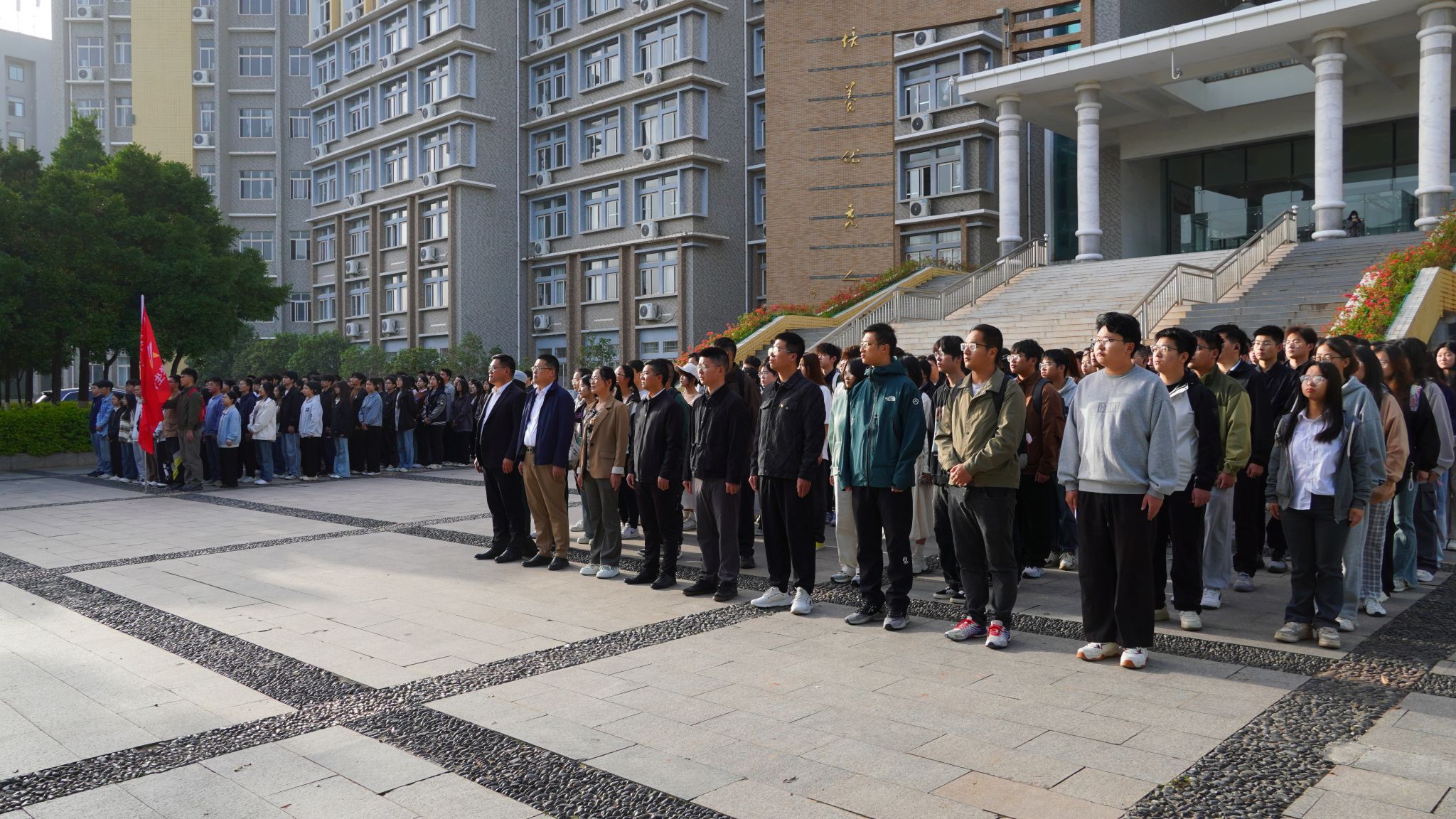 伴随《义勇军进行曲》的激昂旋律,五星红旗缓缓升起,全体师生神情肃穆,行注目礼,奏唱国歌。