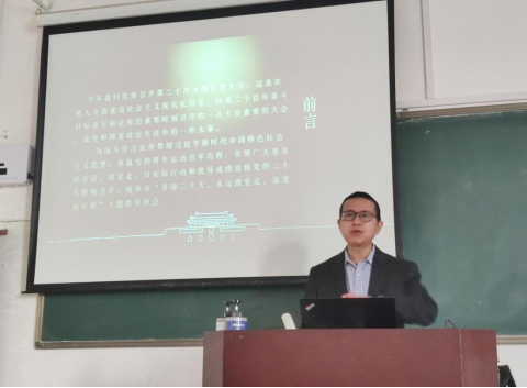 会上,陶知翔带领同学们一起回顾中国共产党的奋斗史,通过一个个生动鲜活的党史故事,与同学们深刻感悟中国共产党一路走来的坎坷与艰辛。同时,陶知翔从四个方面阐述了大学生如何做永远跟党走,争做德才兼备,全面发展的人才:一是要充分认识党在国家和人民事业中的领导核心地位,充分理解中国共产党的领导的历史必然性,是中国特色社会主义事业和实现国家富强、人民幸福的根本保证。二是要自觉坚决维护习近平总书记的核心地位,理解习近平总书记的核心地位是在新的历史时期的伟大斗争实践中形成的,是党、国家和人民事业的需要,要在政治上、思想上、行动上自觉与以习近平同志为核心的党中央保持高度一致。三是要按照习近平总书记对知识分子和青年学生的重要讲话规范要求自己的言行,深切感受总书记对知识分子、对青年学生的关心关爱和博大胸襟,要深切努力践行总书记对知识分子、对青年学生的殷切期望。四是要充分用好大学时光提升道德水平和培养专业本领,努力成为思想政治坚定、道德品行高尚以及专业技能过硬的优秀大学生。