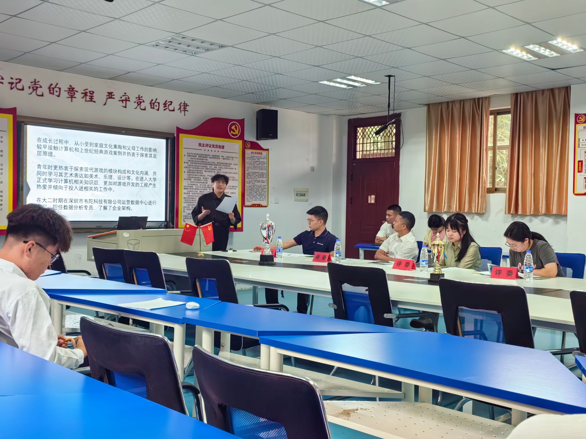经前期筛选,共有8人入选初赛。比赛中,选手们围绕自我认知、职业认知、职业决策、计划实施等方面进行了职业生涯规划PPT设计展示,评委从职业准备、实现途径、个人职业优劣势等方面进行了提问。