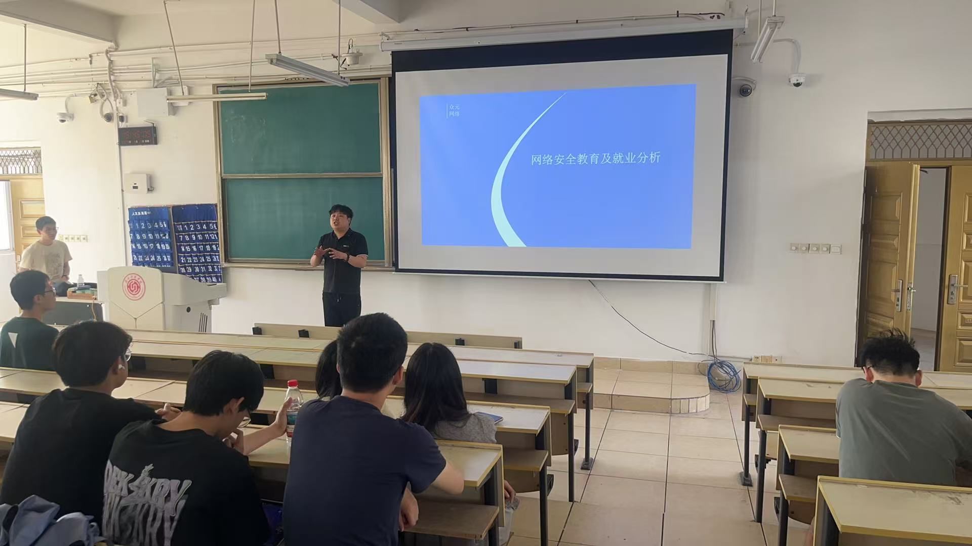 随后,颜毅以“从课堂走向职场”为主题,重点围绕网络安全领域的职业发展路径进行了深入讲解。他结合自身十余年网络安全人才培养经验,系统分析了当前网络安全岗位的职业序列、发展方向及核心能力要求,指出网络安全人才培养应注重实战能力、岗位对接和长期职业成长的协同推进。