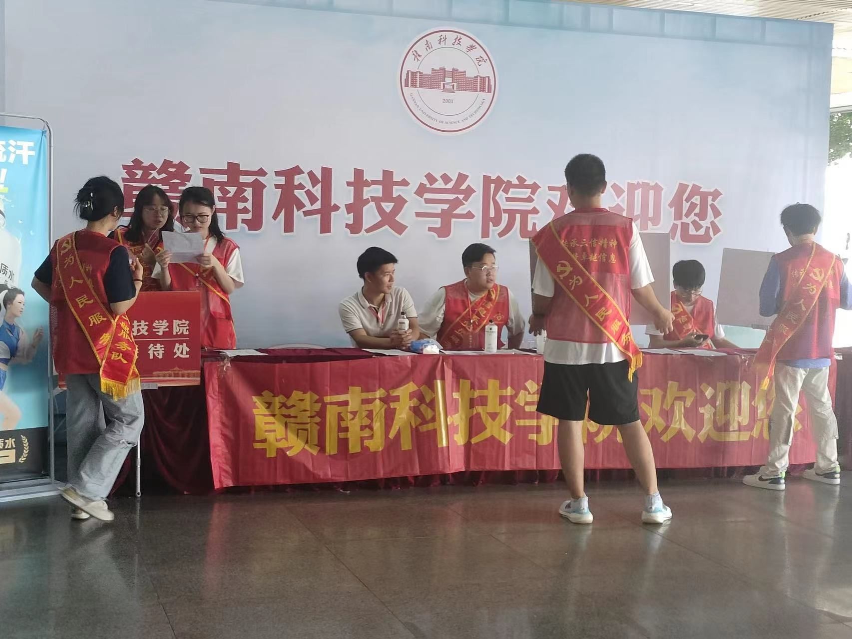 迎新活动正式开展前,支部同志提前前往车站进行迎新布场,出发前,由支部书记吴宪同志对支部同志强调注意出行安全。抵达车站后,支部同志尽心尽力、认真细致地布置新生接待处,在支部同志的努力下,接待处变得井井有条。