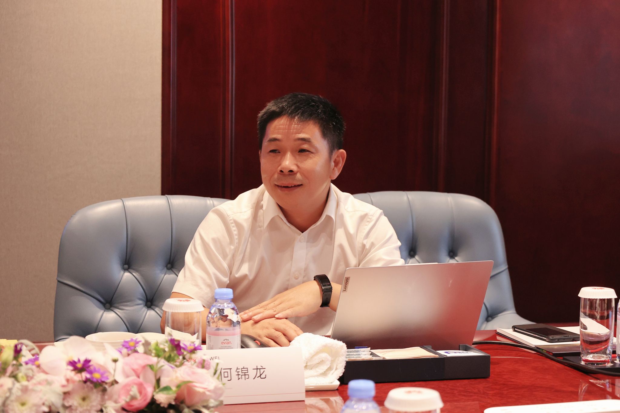 何锦龙在会上介绍了项目推进情况,他就建设电子信息现代产业学院及实训基地的基本情况、分析论证、建设方案、工作进展等情况作了详细介绍,并就未来三方更高、更广、更深的合作规划做了介绍。