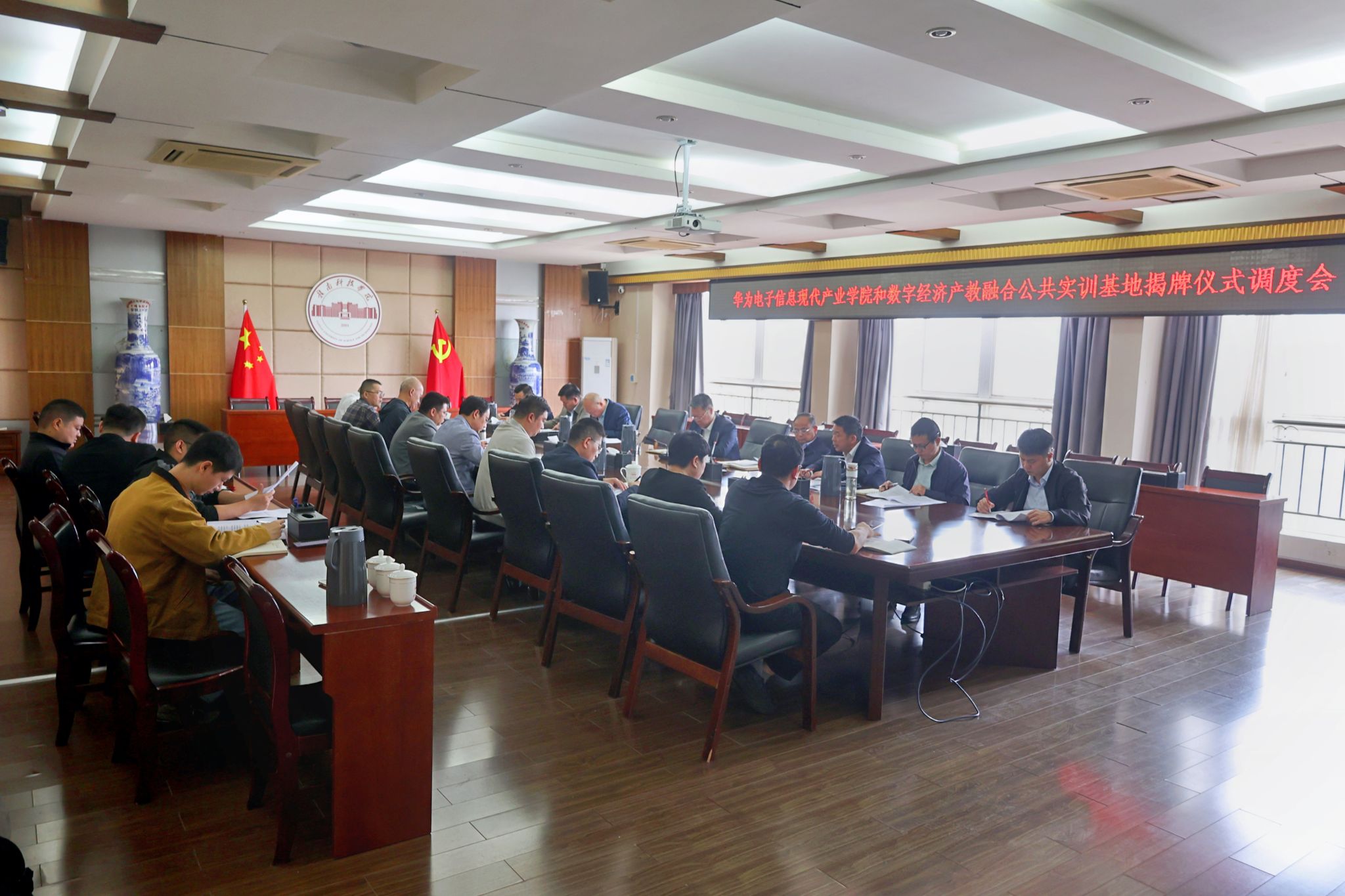 会上,学校过渡期管委会常务何锦龙介绍了电子信息现代产业学院和数字经济产教融合公共实训基地揭牌仪式工作方案及任务分工,并对各专项工作组的工作职责进行了详细解读。