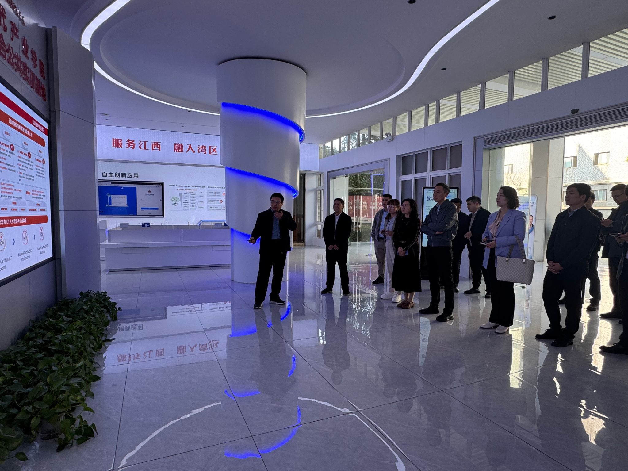 上午,张晓东一行参观了电子信息现代产业学院及数字经济产教融合公共实训基地,产业学院执行院长谢小云详细介绍了产业学院的办学模式以及数字经济产教融合公共实训基地的实践成效。